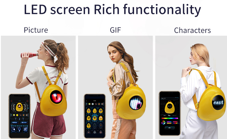 This innovative LED backpack features a built-in full-color 32*32 dot matrix screen for a higher-density pixel display that allows for clearer images.
